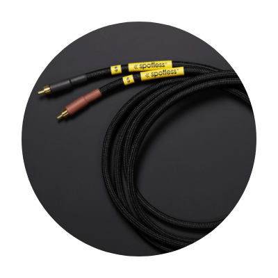 Spotless Handmade Stereo Audio CablesSpeaker Cable2.3~2.8 meters (90″~110″)pure copper wiresilver-plated solid copper plug→Speaker Cable2.5 meters (98″)pure copper wire24K gold-plated solid copper→RCA Cable1.5 meters (59″)RCA to RCA, or RCA to 3.5mm jackhigh purity copper wirehigh purity copper plugs→RCA Cable1.5 meters (59″)RCA to RCA, or RCA to 3.5mm jackhigh purity copper with silver-plated wirehigh purity copper with gold-plated plug→Power Cable1.5 meters (59″)high purity copper wirehigh purity copper plug→